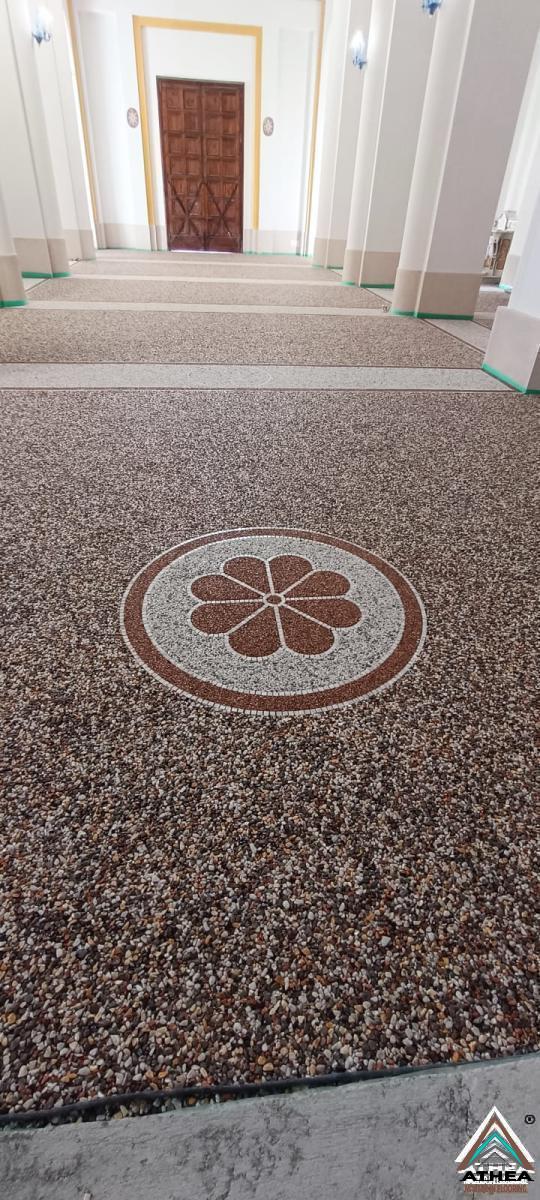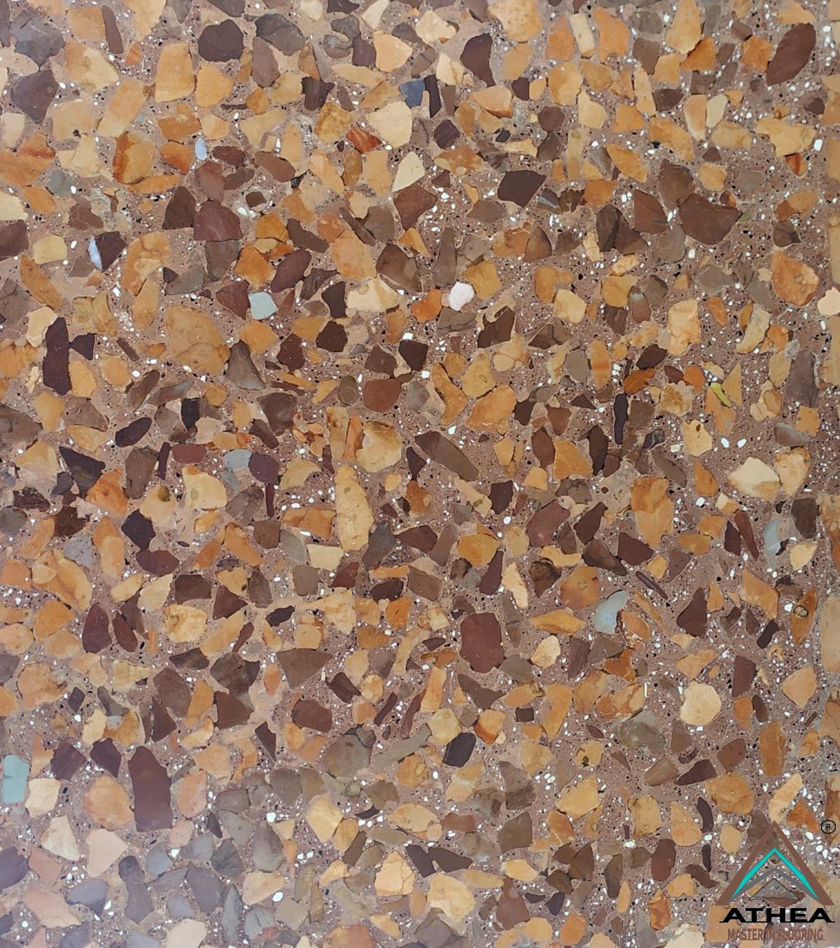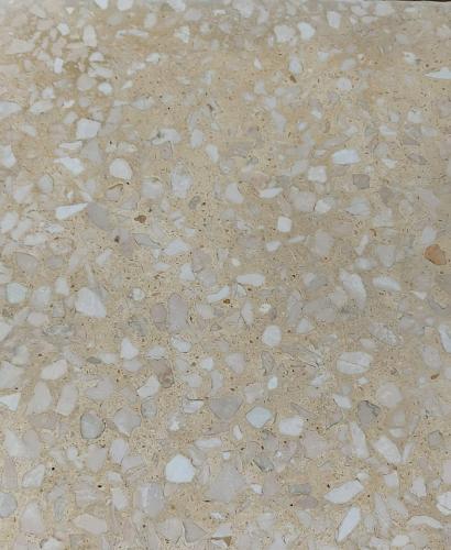 Il Terrazzo alla Veneziana viene realizzato secondo i canoni storici della sua tradizione ma con l’ausilio di leganti minerali e inerte lapideo selezionato dopo accurato lavaggio e successiva essiccazione a forno,con miscela di vari Marmi secondo adeguate curve granulometriche (scala di Fuller o Bolomey) su sottofondi già predisposti.